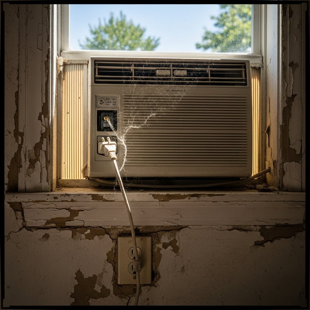 Air conditioners consume large electrical loads, and particularly when starting up, compressors come on. Extension cords are not constructed to survive frequent and high-current breakouts. The sustained use may cause cord melting, breaker tripping or damage to electrical systems.