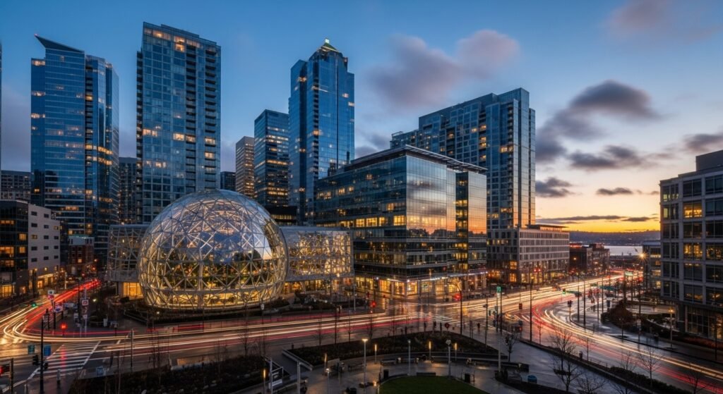 The city of Seattle is influenced by large technology firms and an engineering oriented mentality. Entrepreneurs will have access to a high level of skilled professionals, infrastructure and long term thinking. The environment promotes sustainable development and does not support short term successes.