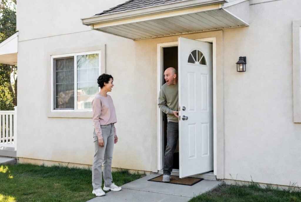 People used to enjoy the surprise visits from their neighbors which became a pleasant social moment. People now view unannounced visitors as an invasion of their personal space because modern contact methods allow them to monitor who enters their home. People now expect to receive a text message which informs them about incoming visitors to their residence.