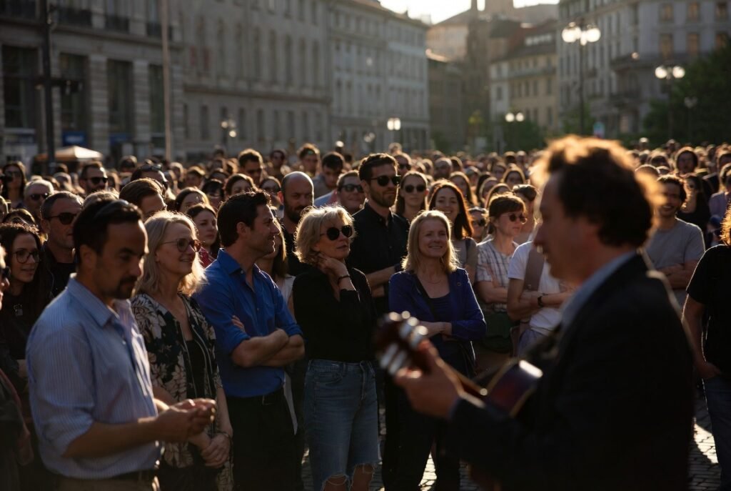 Live performance transforms cold concrete plazas into spaces which create places with emotional connections to their surroundings. Buskers outdoor theater and pop-up events establish unique identities for neighborhoods which enhance their attractiveness while making them appear safer and more dynamic to passersby.