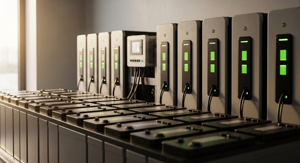 A charger designed for multi-battery setups supports consistent charging across all units. Chargers which meet the total voltage requirements or parallel load specifications enable operators to control energy distribution without introducing extra challenges.