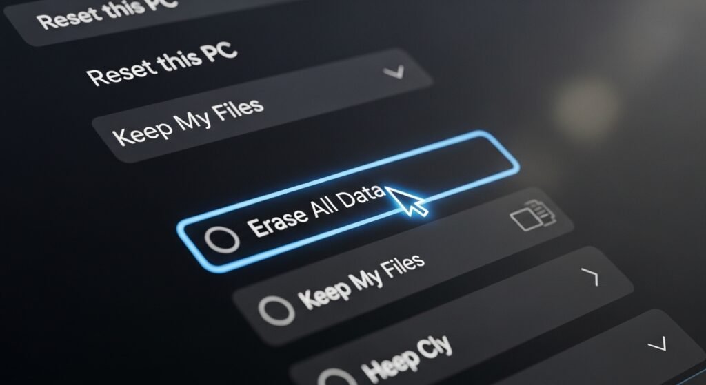 Some reset options only remove access, not the data itself. A full erase option takes longer but clears stored information more deeply across the drive.