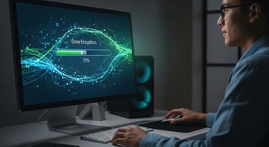 Drive encryption scrambles data into unreadable form. Turning encryption on before erasing adds another layer of protection. Even if small data pieces remain, they appear unreadable.