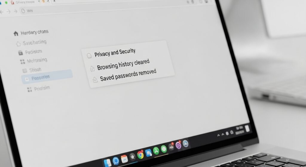 Browsers store history, cookies, and saved logins. Clearing browsing data removes traces of websites and accounts. This step matters because browser data often stays behind even after files disappear.