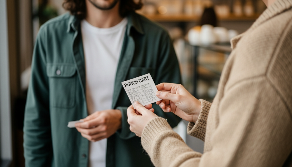 Customers use punch cards as a tool to earn rewards. The system displays progress, which creates an incentive for customers to develop habitual behavior, especially in cafes, salons, and local shops.