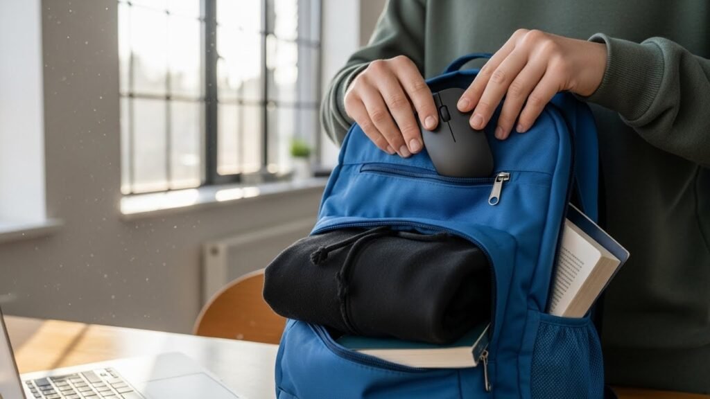 A wireless mouse is a smart choice for school trips. You might pack it away without worrying about a messy cable. Most models are small and very light. It seems that they do not take up much room in bags.