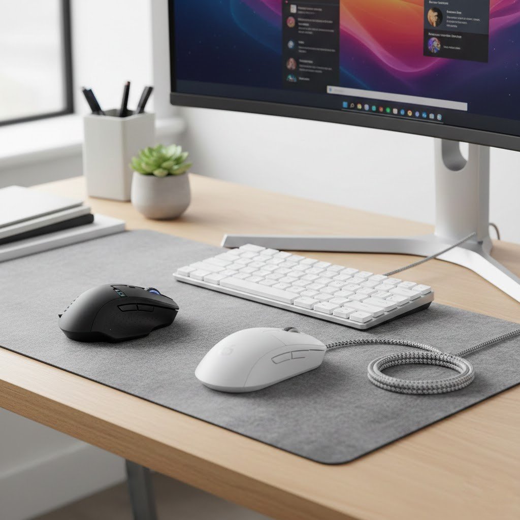 It seems that a wireless mouse helps keep your desk looking very tidy. Standard mice have long cables that might get tangled with other wires today. By removing the cord, you may have more space. Perhaps this look is nice for a home office.