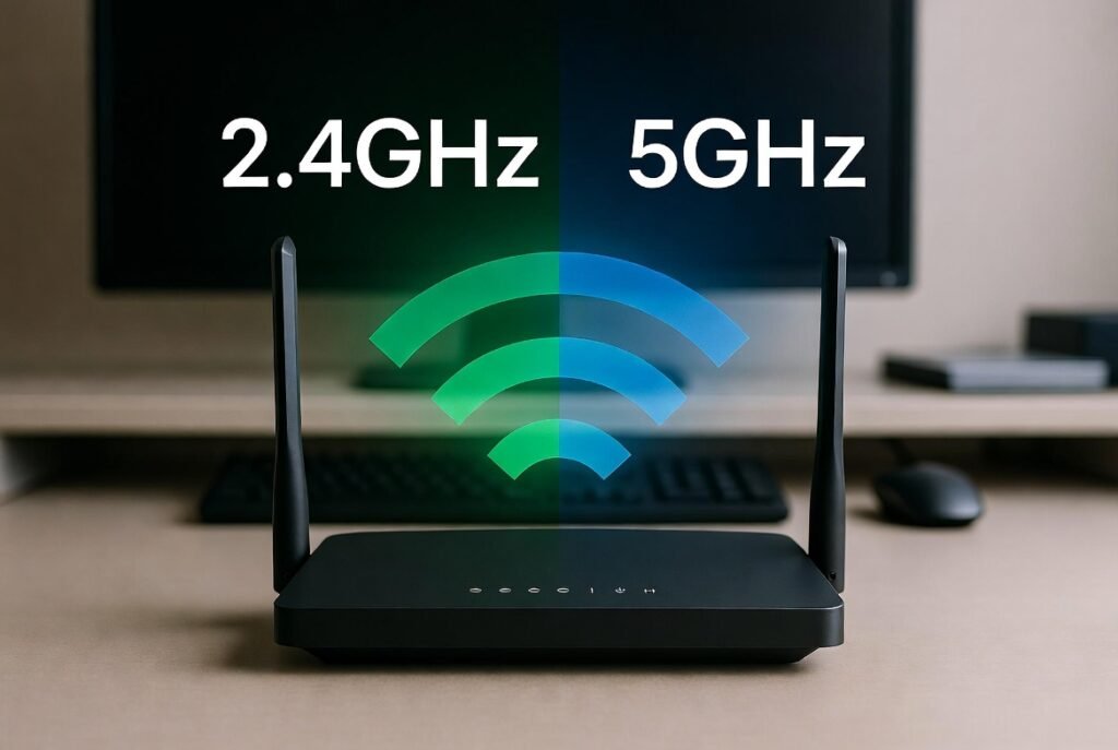 A dual-band router will broadcast 2.4 GHz and 5 GHz. This enables devices to network at the optimal frequency, which balances between speed and range as well as reduces congestion between devices.