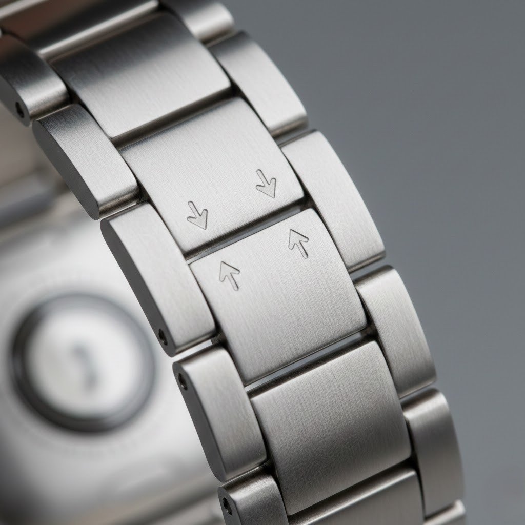 Most Apple Watch metal bands have small arrows on the inner side showing pin direction. Always follow these markings. Pressing pins in the wrong direction may damage internal components and make reassembly difficult.