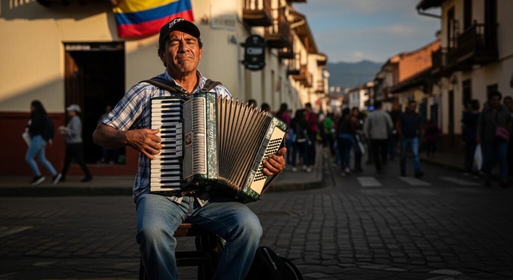 Colombian streets play Vallenato music, which comes from all shops and open windows. The music style uses accordion instruments to create its distinctive storytelling character. The local people use songs which tell their daily stories about lost love and local news and funny things to make a “musical newspaper” for the community.