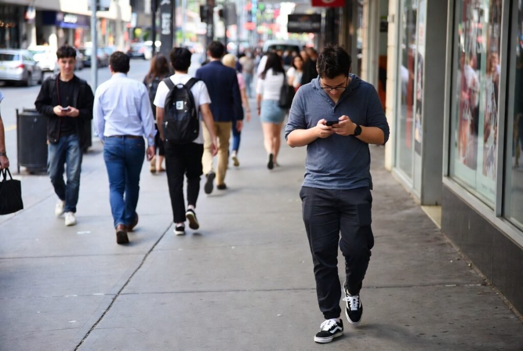 Public spaces become unsafe when people walk or sit there while watching their screens. People experience greater social isolation because they cannot connect with their physical environment.
